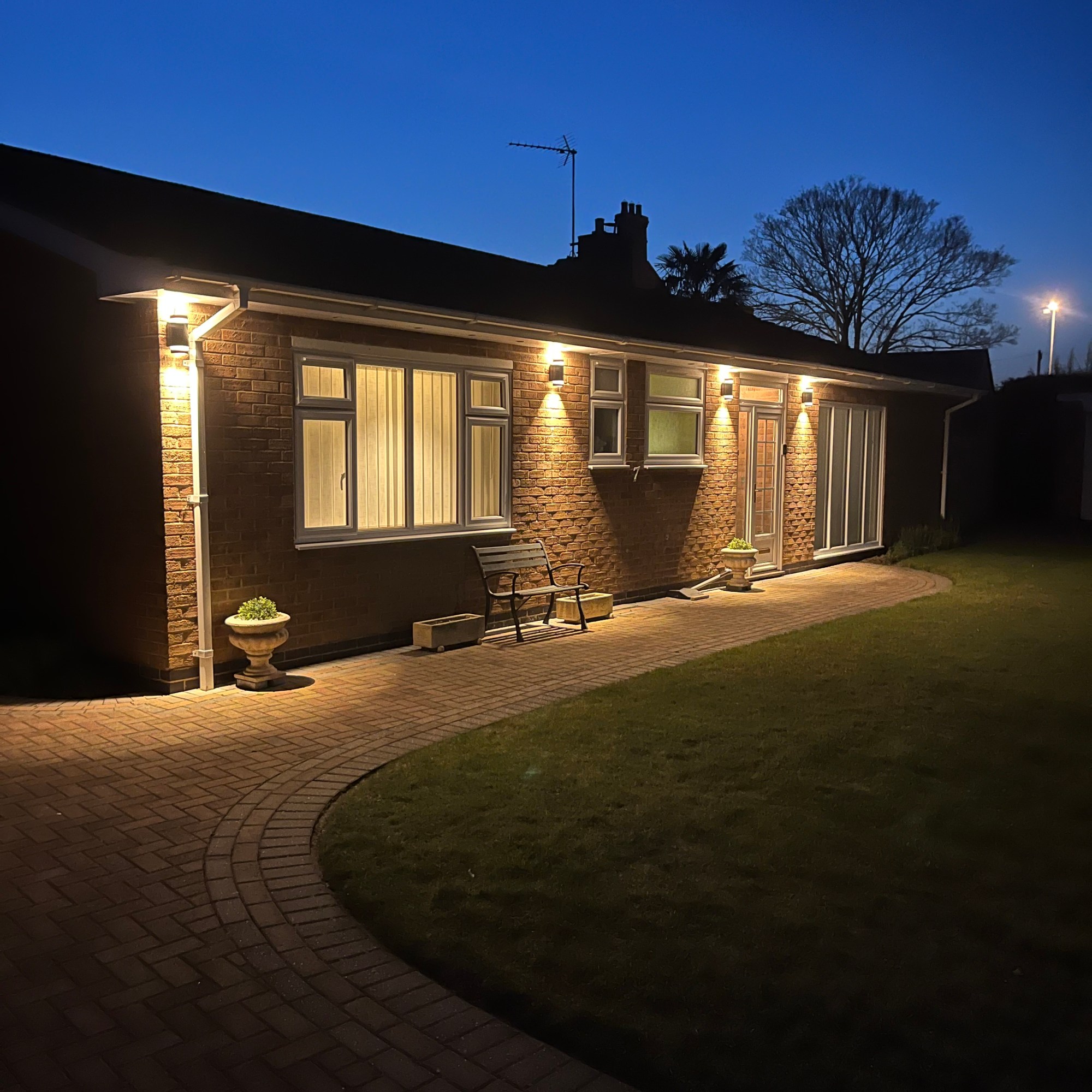 This Project consisted of new external lighting and security lighting around the property, This was requested by the owner who had recently moved in to give them added security and safety when in the garden at night.